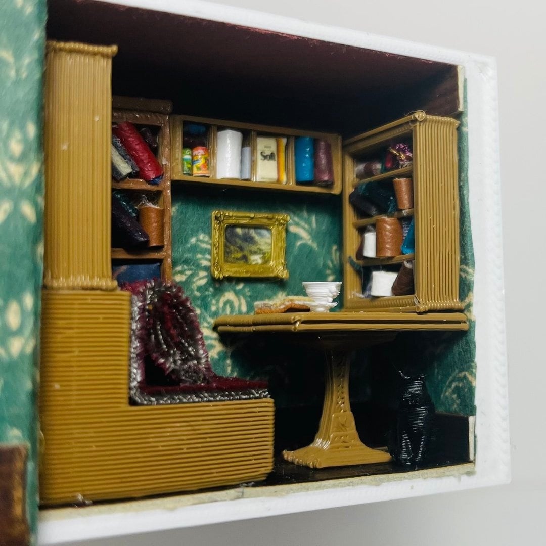 ミニチュア 本型ドールハウス 黒猫と本の部屋 1/48 アンティーク書斎 ギフト プレゼント 誕生日