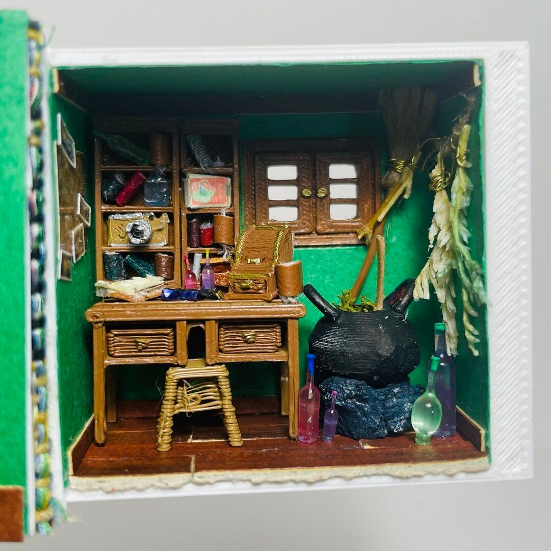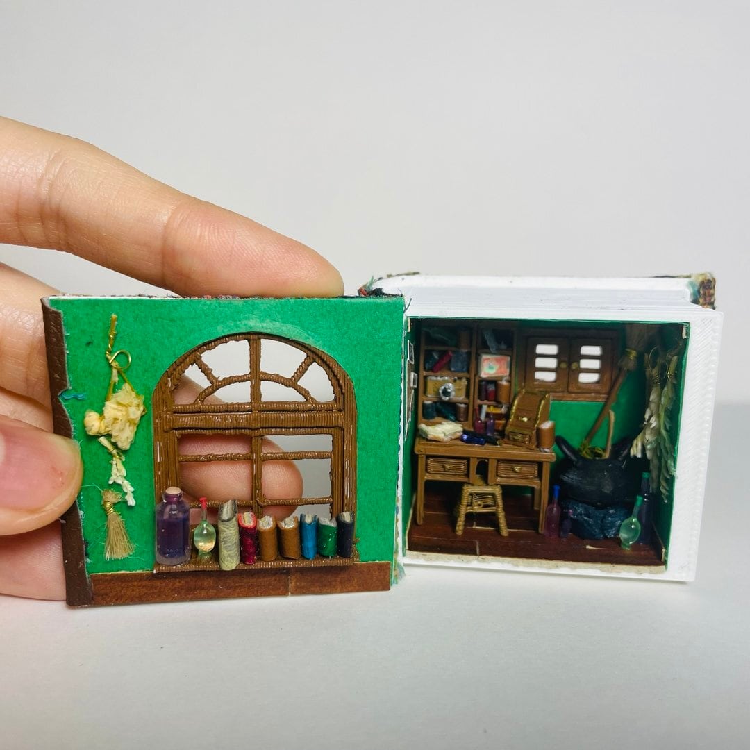 ミニチュア 本型ドールハウス 黒猫と本の部屋 1/48 アンティーク書斎 ギフト プレゼント 誕生日
