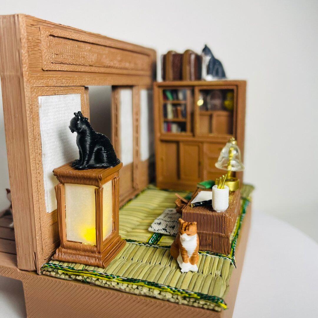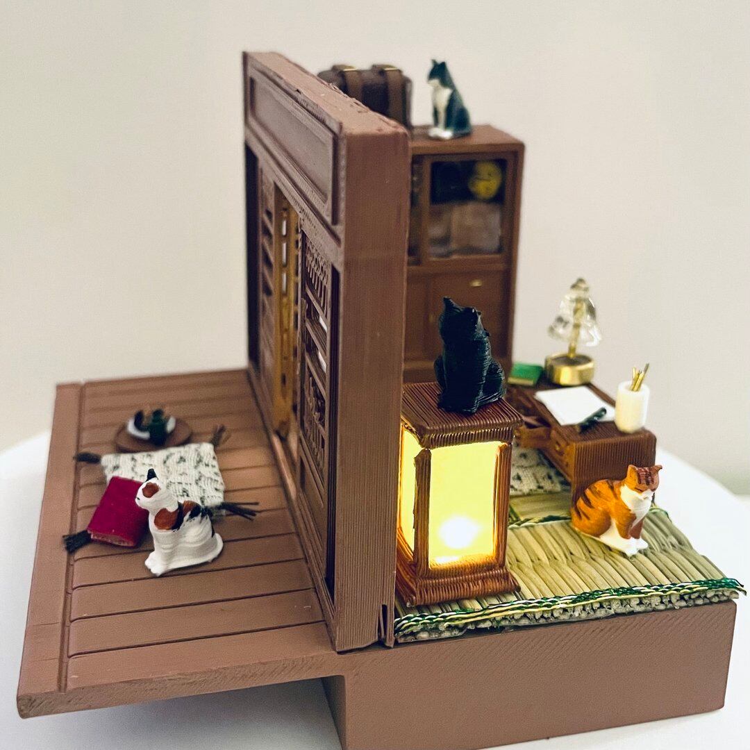 【9cm】1/48スケール 【ライトが灯る】灯りのある和室|猫と過ごす静かな夜 ケース付き